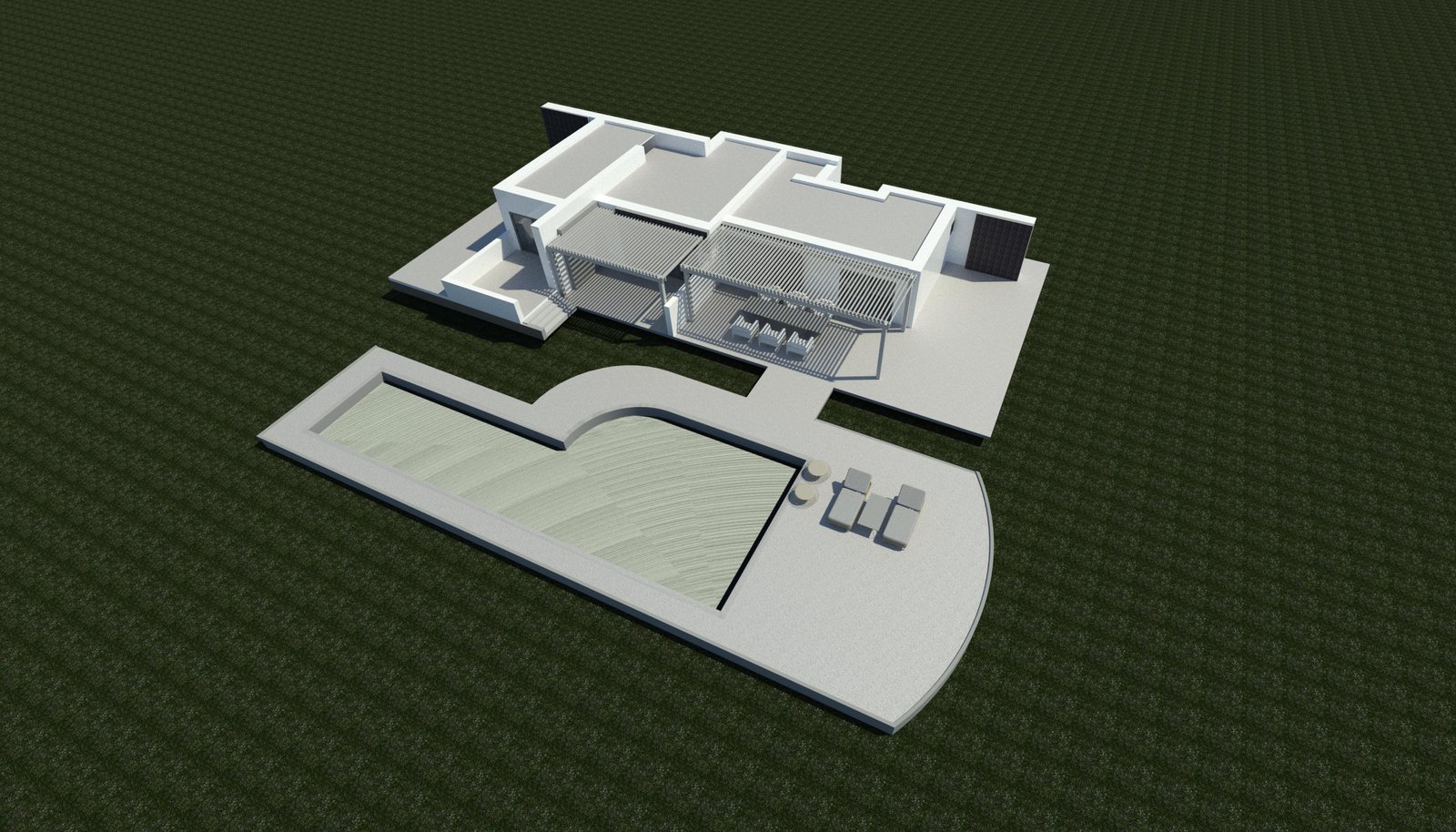 Two single-level residences sharing one common swimming pool designed to serve both properties. The project includes plans for cladding the buildings with local stone, as well as incorporating energy management strategies such as optimal orientation and passive design techniques to enhance sustainability and comfort. The spatial layout is optimized, and fully integrated electromechanical installations are implemented to ensure functionality and efficiency.